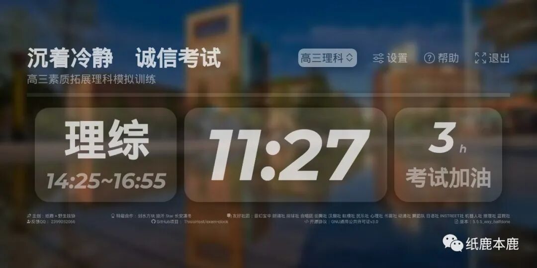 考试时钟是宝中各年级相互借鉴学习的产物。2021年3月19日,为照顾看不清挂钟的学生,2020级要求在考试时在班级一体机上展示时间。2021年3月23日。2019级年级张主任询问我是否可以为考试制作科目倒计时。历经几天时间,考试时钟在2019级的大型考试上与大家见面了,随后它又经过了几次升级、界面变化,如2021年4月26日使用了卡片排版。2021年6月25日,考试时钟受到2020级几名电教管理员的推荐,开始在2020级大型考试上使用。2021年8月1日,考试时钟被外部机构“借用”一次。2021年9月18日,考试时钟支持手动添加一场科目。在这期间,我学到了许多知识,也十分感谢各位的支持。