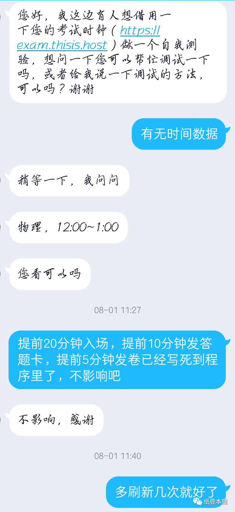 我如实回答:“这是年级之间相互借鉴学习的产物,2020级最先安排考试时屏幕上展示时间,随后……”