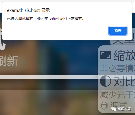 alert("已进入调试模式,关闭本页面可返回正常模式。")