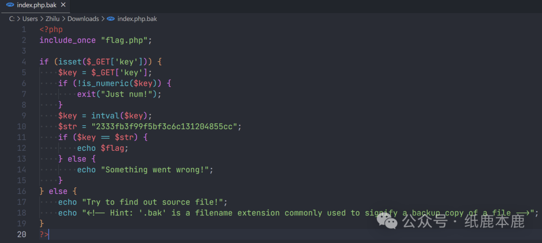 根据提示,下载 /index.php.bak。